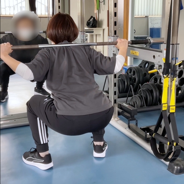 ↓↓10代からシニアの方、スポーツをやっている人もそうでない人も、皆さんスクワットを頑張っています